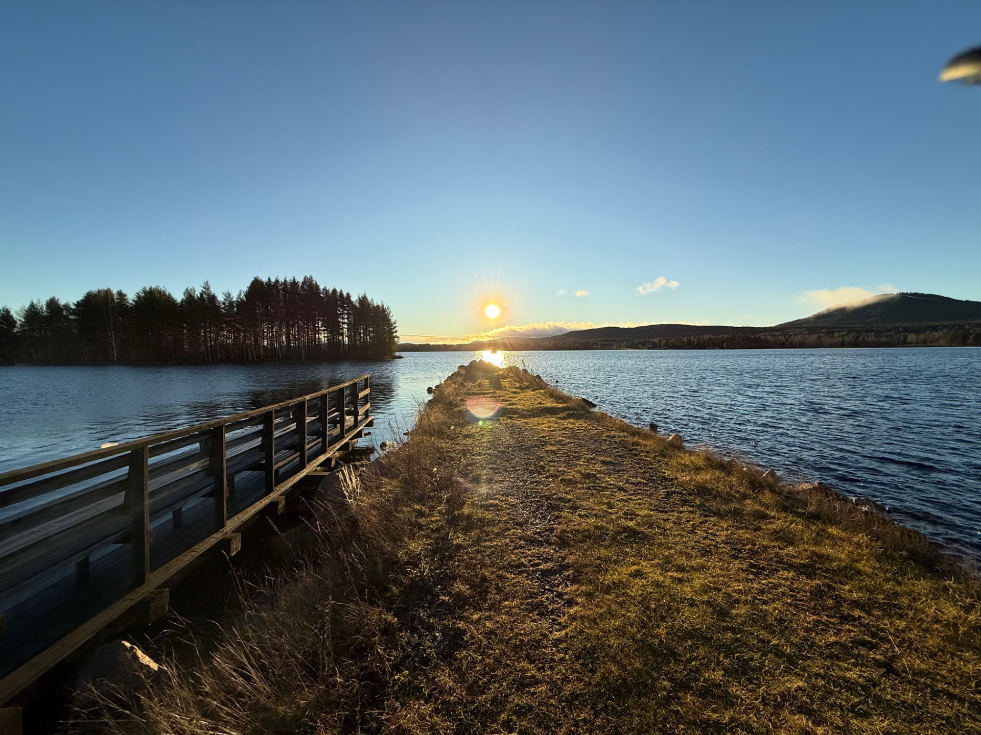 Solen segar sig upp men orkar nästan inte ta sig över piren! Snart vänder det.